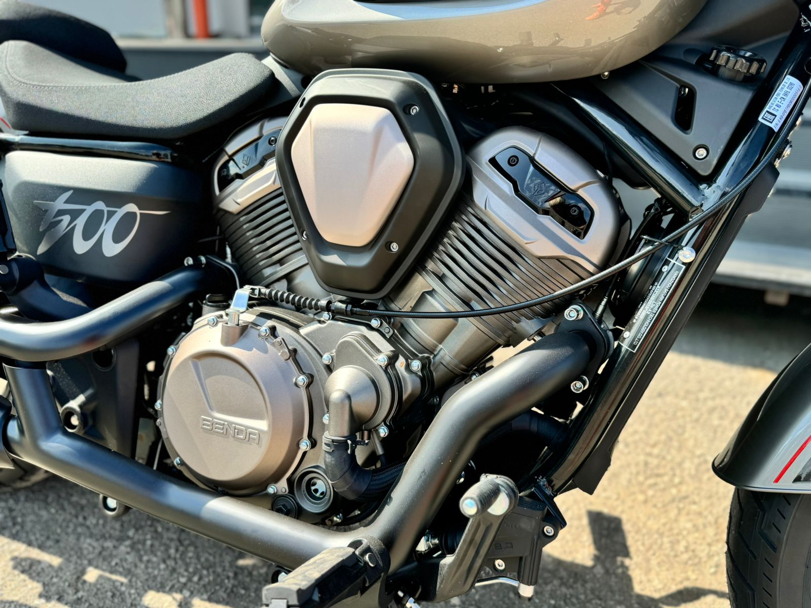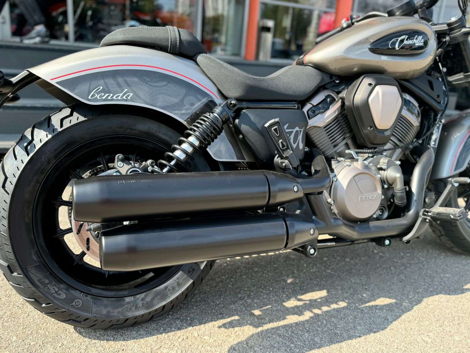 Стилистически Benda Chinchilla 500 напоминает недавно представленный круизер DarkFlag 500, но отличается от него более классической технической частью. Мотоцикл оснащён двухцилиндровым V-образным двигателем жидкостного охлаждения рабочим объёмом 500 куб. см. Мотор получился короткоходным и достаточно высокооборотистым, красная зона на тахометре начинается с отметки 8000 об/мин. Максимальная мощность в 50 л.с. достигается при 8800 об/мин, а пиковое значение крутящего момента – 42 Нм – двигатель развивает при 6700 об/мин.