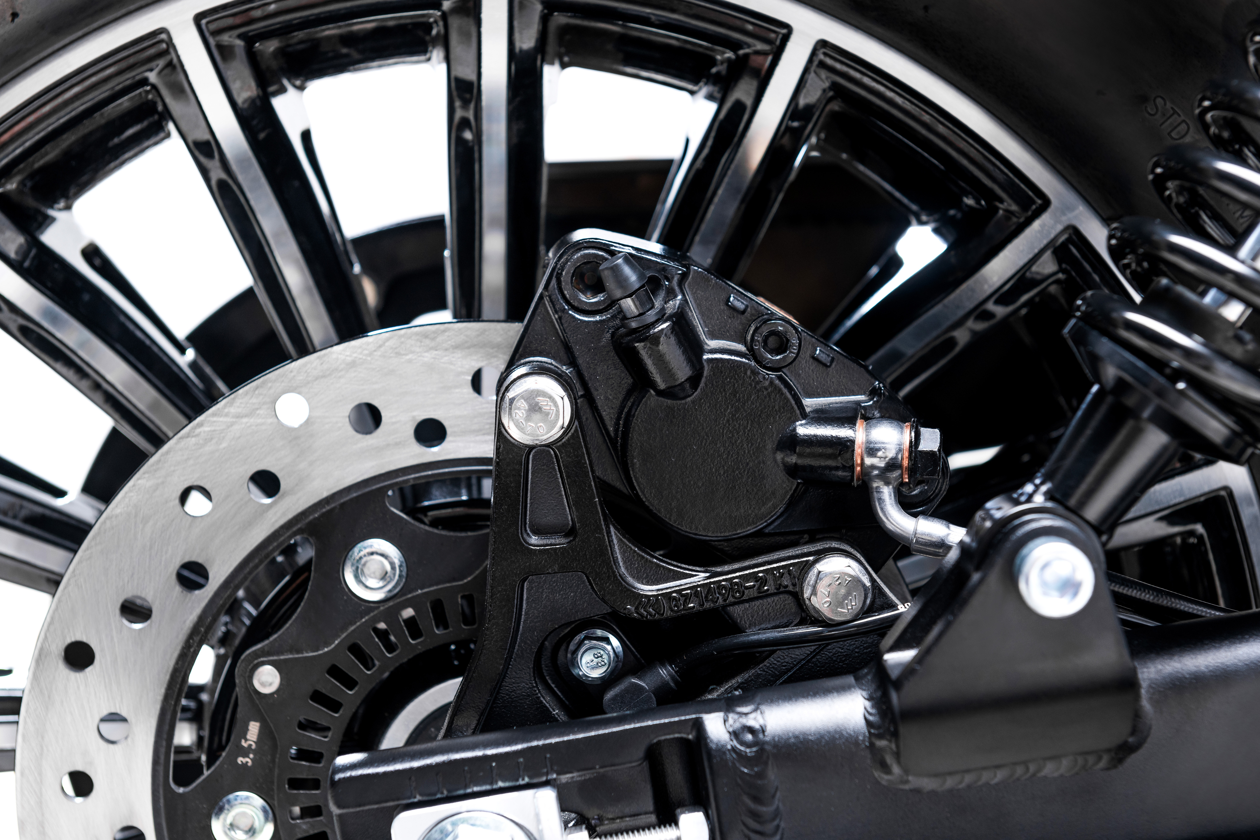 16-дюймовые легкосплавные колёса обуты в высокопрофильные покрышки размерности 130/90-16 спереди и 150/80-16 сзади – они не только выглядят стильно, но и отличаются высоким уровнем собственной амортизации, добавляя комфорта райдеру и пассажиру. На тормозах создатели Benda Rock 300 не стали экономить: на переднем колесе установлен четырёхпоршневой радиальный суппорт, работающий в паре с 300-миллиметровым диском, на заднем — двухпоршневой суппорт и диск диаметром 240 мм. А двухканальная антиблокировочная система тормозов подстрахует в экстренных ситуациях.